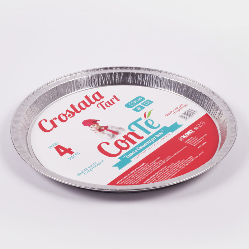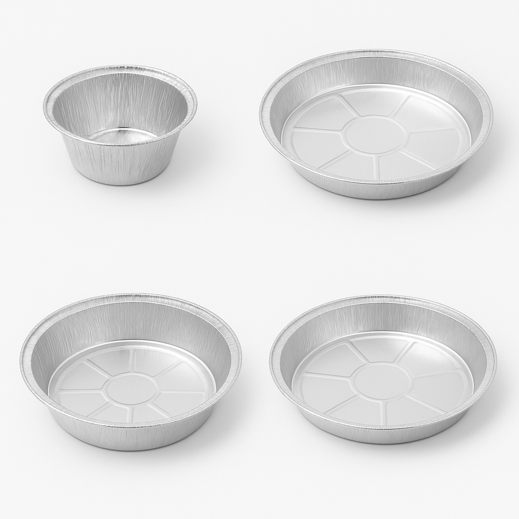 Contenitori in alluminio tondi bordo G, resistenti e pratici, ideali per cottura, conservazione e asporto di alimenti caldi o freddi.