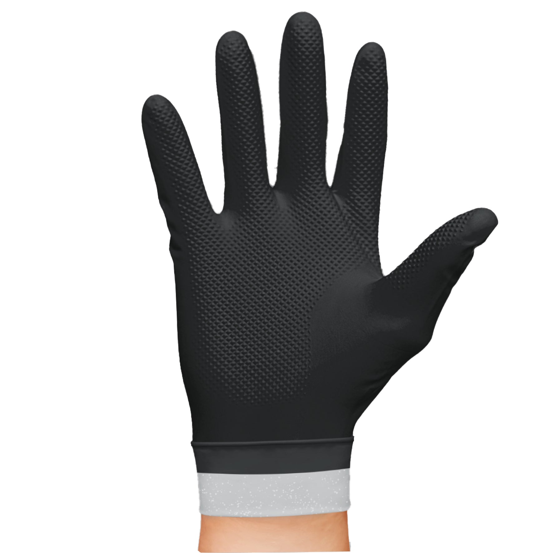 Guanto monouso in nitrile, ambidestro, non sterile. Totalmente privo di lattice, ftalati e talcatura. Ha floccatura interna e superficie diamantata per un grip eccellente anche sulle superfici oleose.
